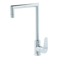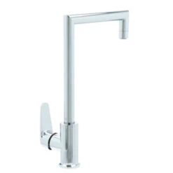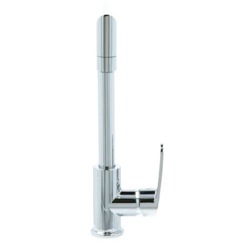 De Absolut keukenkraan Fasso met hendel Chroom is een blikvanger in je keuken met de hoge hoekige U-vormige uitloop. De strakke vormgeving en chromen afwerking passen perfect in jouw moderne keuken. De kraan kun je ook verkrijgen in zwart of grafiet. Met de kraan ga je ook in de tijd mee door de ingebouwde waterbespaarder in de sproeikop. Zo bespaar je op je waterverbruik. Dat is niet alleen goed voor het milieu, maar ook voor je portemonnee. De hoogte van maar liefst 48 cm in combinatie met de 360° draaibaarheid van de uitloop zorgen dat je veel ruimte in je gootsteen hebt. Handig als je een grote pan moet vullen! Met de eenhendelbediening meng je eenvoudig met 1 hand het water naar de gewenste temperatuur. De keramische schijven maken draaien soepel en nauwkeurig en vergen bovendien weinig onderhoud. Ook veeg je kalk eenvoudig met je vingers van de uitloop af doordat vuil en kalk zich niet makkelijk hecht aan de siliconen noppen in de sproeikop. Met de meegeleverde flexibele aansluitslangen en bevestigingsmateriaal sluit je deze kraan makkelijk zelf aan door het vereenvoudigde montagesysteem. Op de kraan krijg je 5 jaar garantie.