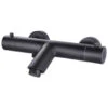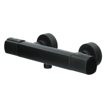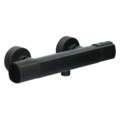 De Absolut thermostatische douchekraan Absi Zwart is stoere kraan met veel gebruikscomfort. De tijdloze vormgeving met de mat zwarte afwerking geeft een robuuste uitstraling en past daarmee perfect in jouw industrieel of landelijk badkamerinterieur. Van deze kraan is ook een thermostatische badkraan verkijgbaar. Met de thermostatische kraan douche je comfortabel doordat de watertemperatuur constant blijft, ook al zijn er wisselingen in waterdruk. De kraan heeft een waterbesparingsknop, die ervoor zorgt dat je de kraan niet direct op de hoogste stand draait. Wens je toch een hardere straal, dan druk je de stopknop in en draai je de kraan verder open. Vooraf kun je ook de gewenste temperatuur instellen. Draaien gaat daarbij soepel en nauwkeurig door de keramische schijven in de kraan, bovendien vergen deze nauwelijks onderhoud. Met de temperatuurbeveiligingsknop op 38°C voorkom je dat je te heet doucht. Veilig voor het hele gezin! Deze kraan is daarmee niet alleen een mooie aanvulling in je badkamer, maar zorgt er ook voor dat je bespaart op je waterverbruik en energiekosten. Goed voor het milieu en leuk voor je portemonnee! De kraan installeer je makkelijk zelf met de bijgeleverde rozetten, S-koppelingen, bevestigingsmateriaal en montagehandleiding. De hartafstand is 15 cm en met de S-koppelingen past de kraan op iedere universele waterleiding. De ingebouwde keerkleppen zorgen ervoor dat vuil water niet terug de leiding instroomt. Besluit je deze kraan te kopen, dan profiteer je ook van 5 jaar fabrieksgarantie.