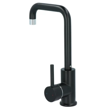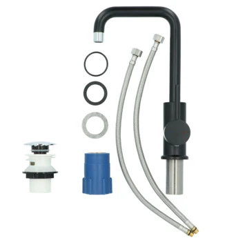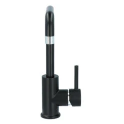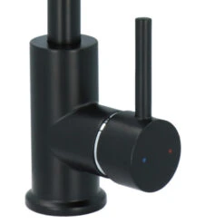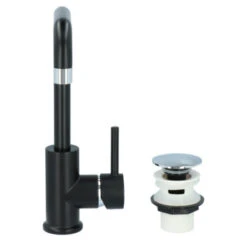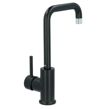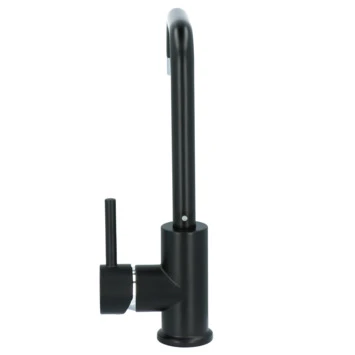 De Absolut wastafelkraan Haiti met hendel en pop-up afvoerplug Zwart is een blikvanger in je badkamer met de hoge hoekige U-vormige uitloop. De strakke, maar toch afgeronde vormen en de mat zwarte afwerking passen perfect in jouw landelijke of industriële badkamerinterieur. Deze kraan is ook in chroom verkrijgbaar, en daarmee kies je altijd een kraan naar jouw smaak. De hoogte van 28 cm in combinatie met de 360° draaibaarheid van de uitloop zorgen dat je veel ruimte in je wastafel hebt. Handig als je je haar wil wassen! Met de eenhendelbediening meng je eenvoudig met 1 hand het water naar de gewenste temperatuur. De keramische schijven maken draaien soepel en nauwkeurig en vergen bovendien weinig onderhoud. Bij de kraanset krijg je ook een afvoerplug; door met je vinger op de plug te drukken klik je deze eenvoudig open of dicht. Met de kraan bespaar je water door de ingebouwde waterbespaarder in de sproeikop. Dat is niet alleen goed voor het milieu, maar ook voor je portemonnee. Door het vereenvoudigde montagesysteem kun je de kraan heel eenvoudig zelf aansluiten. De flexibele aansluitslangen en bevestigingsmateriaal zijn meegeleverd, inclucief een montagehandleiding. Op de kraan krijg je 5 jaar garantie.