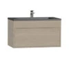 De wastafel sluit het ondermeubel mooi af aan de bovenzijde. Het voorgeboorde gat voor de kraan zit aan de zijkant van de wastafel. Heb je de wastafel eenmaal geplaatst in het onderkastje, dan heeft het een hoogte van 3,2 cm. De breedte van de wastafel is 40,2 cm en de diepte 25,2 cm: groot genoeg om je aan te kunnen wassen en je tanden te poetsen. En als je per ongeluk iets hards in de wastafel laat vallen, scheurt een polybeton wastafel minder snel dan een keramieken variant.