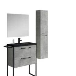 De Atlantic badmeubelset Sienna met spiegel en zwarte wastafel 60cm beton is een hangende set met een chique uitstraling. Dankzij het hangende design creëer je een ruimtelijke look in jouw badkamer. Het meubel is voorzien van 2 soft close laden en een mat zwarte keramische wastafel. Daarnaast is aan deze set een losse spiegel toegevoegd. De set is voorzien van stijlvolle zwarte grepen, wat zorgt voor een chique en industrieel uiterlijk. De set wordt flatpacked geleverd en is eenvoudig te installeren met de meegeleverde bevestigingsmaterialen. Exclusief wastafelkraan.ngsmaterialen. Exclusief wastafelkraan.