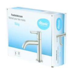 De Atlantic fonteinkraan Riley met hendel RVS bestaat uit een RVS fonteinkraan van 12,2 cm hoog, bevestigingsmateriaal en montagehandleiding. De Riley fonteinkraan heeft een handige eenhendelbediening, waarmee je eenvoudig de kraan aan zet. De kraan heeft een diepte van slechts 10,2 cm en is daarmee uitermate geschikt voor gebruik in het toilet. De geborstelde afwerking geeft de tijdloos vormgegeven kraan een wat stoerdere uitstraling. Gebruik alleen water en een zachte doek om de kraan schoon te maken. Gebruik geen schurend, bijtend, azijnhoudend of agressief schoonmaakmiddel. Besluit je deze kraan te kopen? Dan heb je 5 jaar garantie.