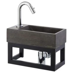 De Brody fonteinset van Atlantic is gemaakt van zwart natuursteen en is ideaal voor de kleine badkamer of toiletruimte. Door deze wasbak in een hoek te plaatsen kun je ruimte besparen, maar hij staat ook prima op een vlakke wand. De fonteinset komt met kraan, designsifon, afvoerplug en de benodigde pluggen en schroeven. De kraan, sifon en afvoerplug hebben een stijlvolle verchroomde buitenlaag. Bij dit model zit het kraangat, met kraan, aan de linkerkant van de wasbak. Deze is ook verkrijgbaar met het kraangat aan de rechterkant of gemaakt van wit keramiek in plaats van natuursteen. De Atlantic Fonteinset Brody Links Zwart Natuursteen 36x18x9 cm is eenvoudig te monteren en komt met 3 jaar garantie. Het Atlantic Jack metalen frame voor fonteinset is apart verkrijgbaar.