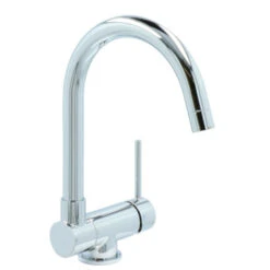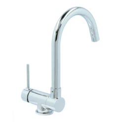 De Atlantic keukenkraan Carson met hendel Chroom bestaat uit een glanzende keukenkraan van 30 cm hoog met 2 flexibele aansluitslangen, bevestigingsmateriaal en montagehandleiding. De Carson keukenkraan heeft een draaibare uitloop van 360° waarmee je eenvoudig plaats maakt bij je gootsteen. Ook kun je de uitloop tot 90° naar beneden inklappen, wat heel handig is als je bijvoorbeeld het raam achter de kraan open wil zetten. Met de eenhendelbediening draai je met 1 hand de kraan naar de gewenste temperatuur. Je bespaart water door de ingebouwde eco-klik. Een ingebouwde weerstand in de hendel zorgt ervoor dat je de kraan niet direct op de hoogste straalstand zet. Wens je toch een hardere straal, dan zet je de hendel verder open. Aan de anti-kalk perlator hecht kalk zich moeilijk vast en veeg je er met de hand af. Deze keukenkraan heeft een mooie glanzende chromen afwerking. Gebruik alleen water en een zachte doek om de kraan schoon te maken. Gebruik geen schurend, bijtend, azijnhoudend of agressief schoonmaakmiddel. Op de kraan heb je 5 jaar garantie.