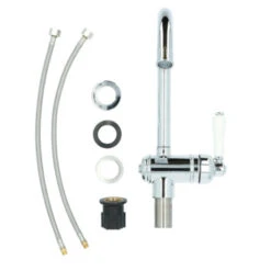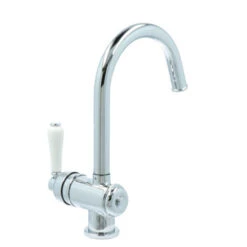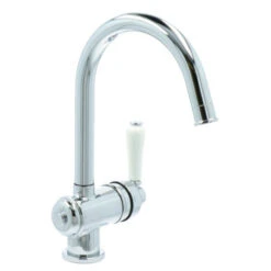 De Atlantic keukenkraan Charles met hendel Chroom bestaat uit een verchroomde keukenkraan van 31 cm met 2 flexibele aansluitslangen, bevestigingsmateriaal en montagehandleiding. De Charles keukenkraan heeft een draaibare uitloop van 360° waarmee je eenvoudig plaats maakt bij je gootsteen. Met de eenhendelbediening draai je met 1 hand de kraan naar de gewenste temperatuur. Je bespaart water door de ingebouwde eco-klik. De ingebouwde weerstand in de hendel zorgt ervoor dat je de kraan niet direct op de hoogste straalstand zet. Wens je toch een hardere straal, dan zet je de hendel gewoon verder open. Aan de anti-kalk perlator hecht kalk zich moeilijk vast en veeg je er makkelijk met de hand af. Deze retro vormgegeven keukenkraan heeft een mooie glanzende chromen afwerking en een klassieke handgreep. Gebruik alleen water en een zachte doek om de kraan schoon te maken. Gebruik geen schurend, bijtend, azijnhoudend of agressief schoonmaakmiddel. Op de kraan heb je 5 jaar garantie.