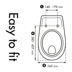 Door de verstelbaarheid in de scharnieren past deze wc-bril op de meeste gangbare toiletpotten met D-vorm, toch raden we je aan de lijntekening goed te bekijken zodat hij netjes past op jouw pot. Tenslotte monteer je de bril met het doordachte ‘Fastfix’ bevestigingssysteem eenvoudig vanaf de onderkant.