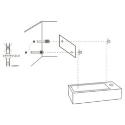 De kraan en de sifon zijn niet meegeleverd. De fontein zelf is gemaakt van keramiek en 38,5×18,5x9cm groot.