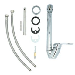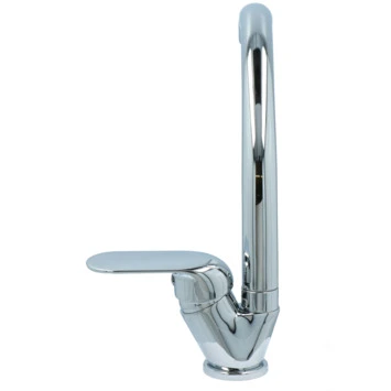OK keukenkraan hoge uitloop met hendel Chroom bestaat uit een chromen keukenkraan, 2 aansluitslangen, bevestigingsmateriaal, montage sleutel en montagehandleiding. De keukenkraan heeft een handige eenhendelbediening, waarmee je eenvoudig met 1 hand de kraan naar de gewenste temperatuur draait. Door de hoge gebogen uitloop van 25,5 cm heb je ruimte om vaat af te spoelen of een emmer te vullen. Dat is met de draaibare uitloop van 360° extra makkelijk. Door de kraan weg te draaien, maak je eenvoudig plaats bij je gootsteen. De tijdloos vormgegeven kraan heeft een mooie glanzende verchroomde afwerking en past in iedere keuken. Gebruik alleen water en een zachte doek om de kraan schoon te maken. Gebruik geen schurend, bijtend, azijnhoudend of agressief schoonmaakmiddel. 2 jaar garantie.