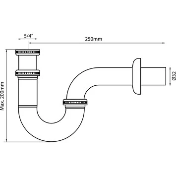 Een elegante en moderne Sanivesk buissifon is perfect voor in de badkamer of toiletruimtes. Aan te sluiten op afvoerbuizen van 32 mm en een afvoer van 5/4″. Het sifon wordt geleverd incl. manchet.