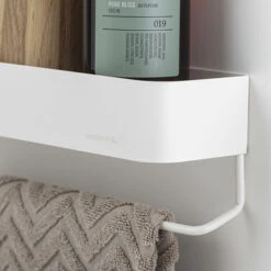Dankzij de rails onder de plank kun je ook diverse handdoeken kwijt.