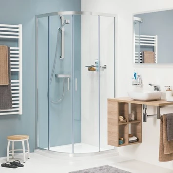 De Sealskin Douchecabine met Schuifdeur Compact Kwartrond 195×90 cm Chroom is een solide douchecabine met een moderne uitstraling. Er is veel aandacht geschonken aan de details; zo zijn schroeven waar mogelijk onzichtbaar weggewerkt. Dat is mooi én makkelijk in het onderhoud. De strakke vormgeving zonder onnodige randjes maken dit een minimalistische en tegelijkertijd duurzame douchecabine. De deuren schuiven open en dat maakt een ruime douchecabine ook in de kleinere badkamer mogelijk. Je hebt immers geen uitzwaai van deuren waarmee je met je inrichting rekening moet houden!
