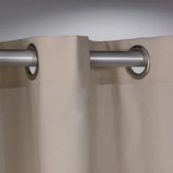 Het Sealskin Douchegordijn Coloris Textiel Ecru 200×180 cm is gemaakt van een mix van katoen en polyester. Deze combinatie van materialen geeft het douchegordijn net wat meer body en een stevige en luxe uitstraling. In de bovenzijde van het douchegordijn zijn ringen van roestvrij staal verwerkt waardoor het gordijn mooi en degelijk opgehangen kan worden.