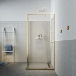 Met Contour is een luxe badkamer binnen handbereik. Dankzij haar strakke lijnen en geborstelde gouden kleurafwerking past deze draaideur met zijwand perfect in een chique badkamerstijl. Het 6 mm dikke veiligheidsglas is voorzien van een antikalklaag, waardoor je douche langer helder blijft. De deur scharniert niet direct tegen de muur, zodat de deur niet tegen een radiator of accessoire stoot. Een ding is zeker: deze douchecabine is een échte eyecatcher in de badkamer.