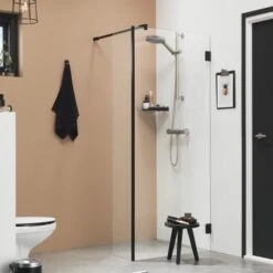 De volledig profielloze serie ‘I AM’ is met recht een transparante alleskunner. Naast diverse standaard maatvoeringen zijn talloze maatwerkoplossingen mogelijk. Zo kunnen we de breedte en hoogte aanpassen, maar bijvoorbeeld ook eventuele schuintes in de muren of het plafond opvangen. Deze Sealskin Inloopdouche I AM A1 98x30x200 cm Zwart bestaat uit een wand met een vast deel op 90 graden. Het is een bijzonder transparante inloopdouche die nét even wat meer water in de doucheruimte houdt. Wat deze douche écht bijzonder maakt, is de unieke matzwarte afwerking. Zo breng je een unieke sfeer in je badkamer. Het veiligheidsglas van maar liefst 8mm is altijd voorzien van een antikalk laag waardoor kalk en viezigheid zich minder snel hecht. I AM Inloopdouches van het type A1 zijn beschikbaar in 880, 1180 en 1380mm. Deze inloopdouche is tevens beschikbaar in een luxueuze zilver hoogglans afwerking en in een stoere RVS uitstraling.