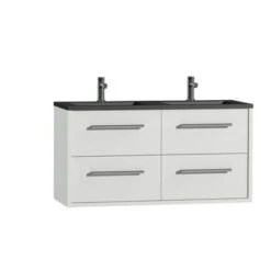 Het Tiger Boston badkamermeubel is krachtig en elegant tegelijk en de mooie ronde greep ligt aangenaam in de hand. De 4 lades bieden voldoende ruimte om alle badkamerartikelen overzichtelijk in op te bergen. Daarnaast zijn ze uitgerust met hoogwaardige ‘soft close’ geleiders waardoor ze geruisloos sluiten. De witte kleurgeeft het meubel een tijdloze uitstraling. De strakke, mat zwarte polybeton wastafel met imitatie natuursteen look maakt deze set compleet.