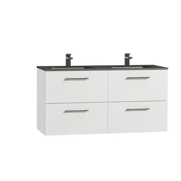 Tiger Badkamermeubel Studio 120cm Hoogglans Wit/matzwart Met Ronde RVS Greep