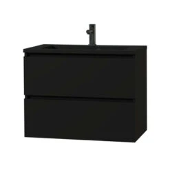 Het greeploze Tiger Karlo badkamermeubel is speciaal ontworpen voor de moderne en industriële badkamer. De volledig voorgemonteerde wastafelonderkast van 80 cm in mat zwart heeft twee ruime lades om al je verzorgingsproducten overzichtelijk in op te bergen. De metalen lades zijn uitgerust met hoogwaardige softclose geleiders waardoor ze altijd geruisloos sluiten. De bovenste lade heeft een mooi afgewerkte sifon uitsparing.