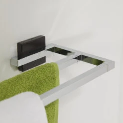 Het Tiger Dubbel Handdoekrek Zenna Chroom/Wengé is gemaakt van hoogwaardige materialen geschikt voor toepassing in vochtige ruimten