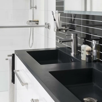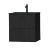 Het greeploze Tiger Karlo badkamermeubel is speciaal ontworpen voor de strakke en moderne badkamer. De wastafelonderkast heeft 2 ruime lades om alle badkamerspullen overzichtelijk in op te bergen. De lades zijn uitgerust met hoogwaardige ‘soft close’ geleiders waardoor ze geruisloos sluiten. Door de mooie heldere witte kleur krijgt het meubel een tijdloze uitstraling. De strakke, mat zwarte polybeton wastafel met immitatie natuursteen look maakt deze set compleet.