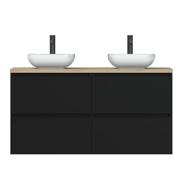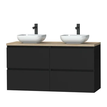 Tiger Karlo Badkamermeubel 120cm Mat Zwart Met Eiken Wasblad En Keramische Waskom