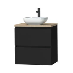 Tiger Karlo Badkamermeubel 60cm Mat Zwart Met Eiken Wasblad En Keramische Waskom