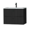 Het greeploze Tiger Karlo badkamermeubel is speciaal ontworpen voor de strakke en moderne badkamer. De wastafelonderkast heeft 2 ruime lades om alle badkamerspullen overzichtelijk in op te bergen. De lades zijn uitgerust met hoogwaardige ‘soft close’ geleiders waardoor ze geruisloos sluiten. De warme houttint geeft een sfeervol karakter aan het meubel. Daarnaast krijgt het meubel, door de voelbare houtnerf, een mooie natuurlijke uitstraling. Het wit houten wasblad is reeds voorzien van een uitsparing voor kraan en waskom. De elegante, onderhoudsarme keramische waskom maakt de set compleet.