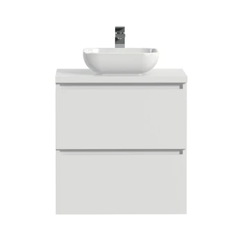 Het greeploze Tiger Karlo badkamermeubel is speciaal ontworpen voor de strakke en moderne badkamer. De wastafelonderkast heeft 2 ruime lades om alle badkamerspullen overzichtelijk in op te bergen. De lades zijn uitgerust met hoogwaardige ‘soft close’ geleiders waardoor ze geruisloos sluiten. Door de mooie heldere witte kleur krijgt het meubel een tijdloze uitstraling. Het wit houten wasblad is reeds voorzien van een uitsparing voor kraan en waskom. De elegante, onderhoudsarme keramische waskom maakt de set compleet.