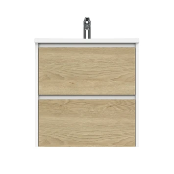 Tiger Reverse Meubelset 60 Cm Met 2 Lades Naturel Eik / Mat Wit Inclusief Quadro Wastafel Hoogglans Wit