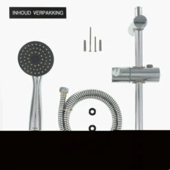 De doucheset Murcia van Tiger bestaat uit een handdouche, doucheslang en -stang met handdouchehouder en verstelbare muursteunen. De handdouche heeft een diameter van 8,5 cm. De ronde en bolle douchekop geeft een retro-look en is uitgevoerd in chroom. Door de siliconen nopjes kan je kalk makkelijk met de hand afvegen. Door de toepassing van Neoperl® technologie bespaar je tot 40% water. Deze technologie zorgt er met een dynamische o-ring voor dat er altijd een constante hoeveelheid water doorgelaten wordt. Bij een hoge druk wordt veel water bespaard, bij lage druk wordt het comfort juist verhoogd door lucht toe te voegen aan het uitstromende water. Je bespaart dus water en je doucht altijd comfortabel. Met de handdouchehouder stel je eenvoudig de hoogte van de douche in. Door de siliconen nopjes kan je kalk makkelijk met de hand afvegen. Doordat 1 muursteun verstelbaar is, kun je de set over je oude boorgaten vastschroeven. De doucheslang heeft een universele 1/2″aansluiting en past op elke douchekraan. Dit product is onderdeel van het Splash eco assortiment: een Tiger lijn met waterbesparende producten.