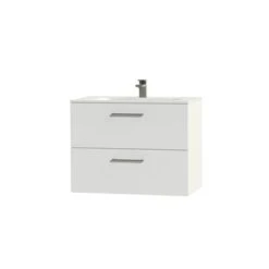 Tiger Studio Badkamermeubel 80 Cm Hoogglans Wit Met Wastafel Polybeton Mat Wit Greep Rvs Afgerond