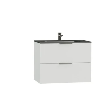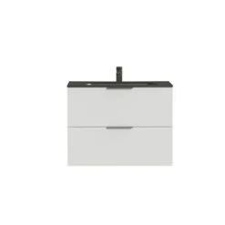 Tiger Studio Badkamermeubel 80 Cm Hoogglans Wit Met Wastafel Polybeton Mat Zwart Greep Rvs Plat