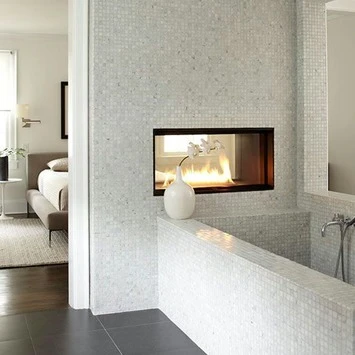 Het gebruik van mozaïek is veelzijdig en is snel en eenvoudig te plaatsen. Met mozaïek kunnen bochten, scherpe hoeken en overgangen gemakkelijk gemaakt worden. Glasmozaïek is krasbestendig en vorstbestendig. Erg goed toe te passen als achterwandje in je douche of toilet.